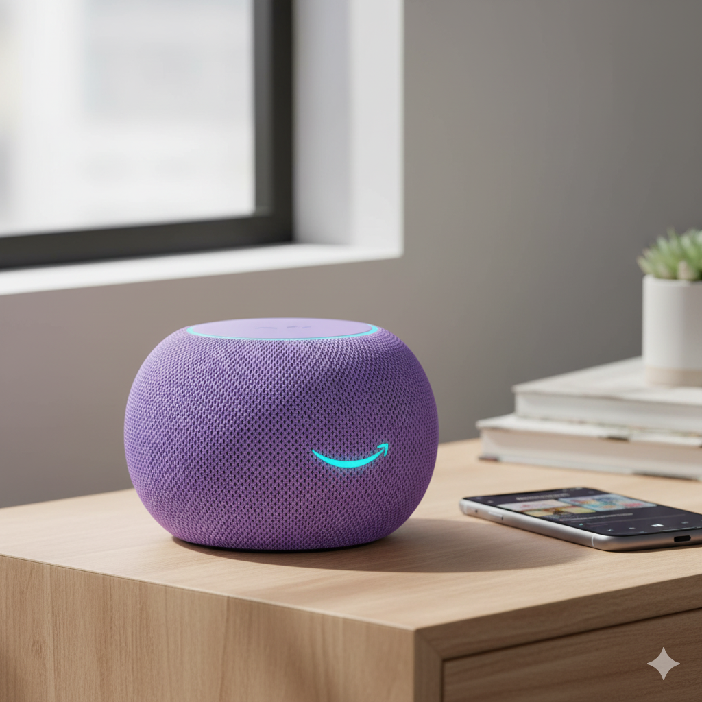Features: Compact smart speaker with Alexa, perfect for small rooms. Voice control for music, smart plugs, and lights.